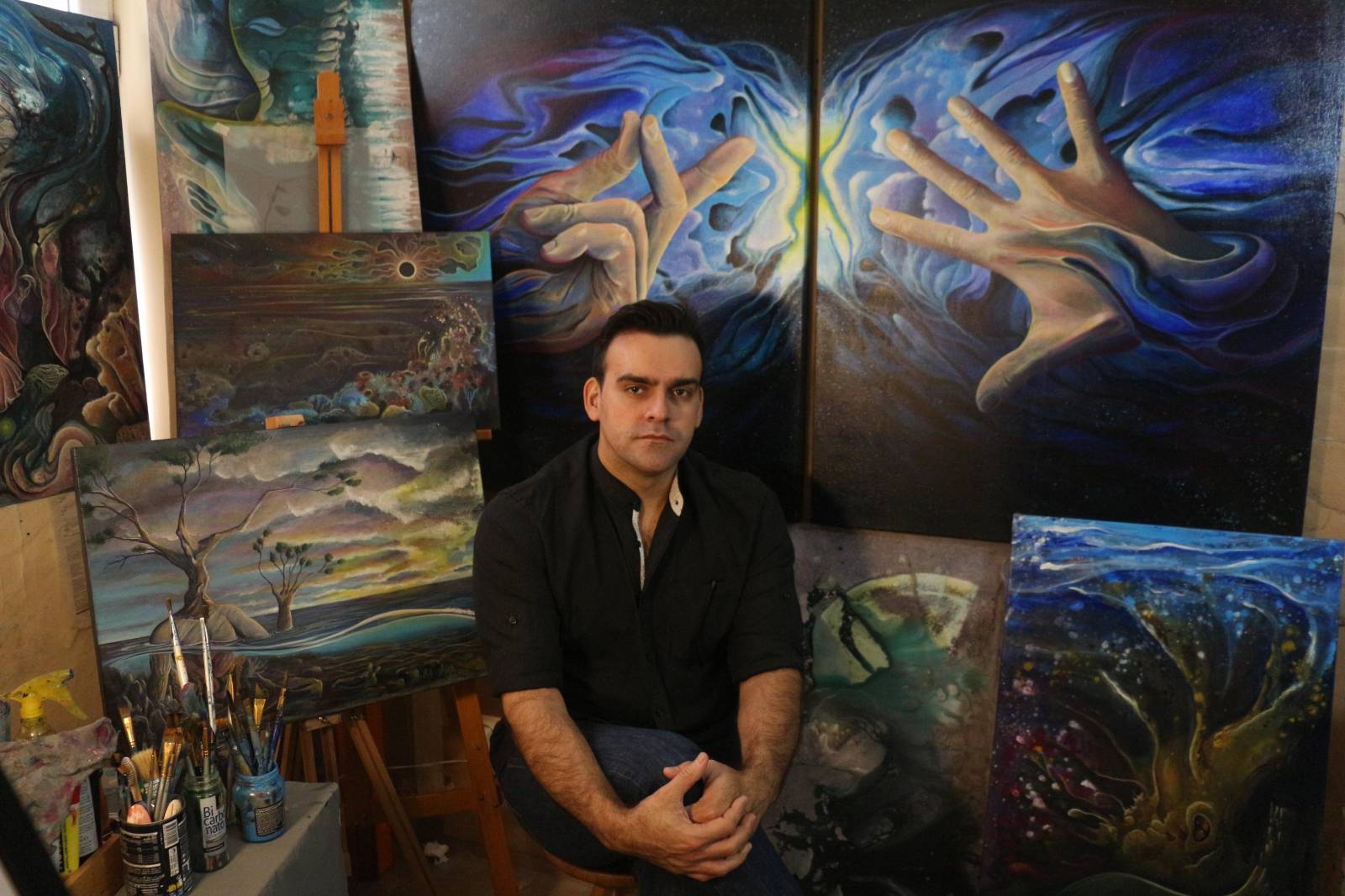 Hoy vivo en Madrid, España. Desde aquí, continúo produciendo y profundizando en los temas que definen mi obra. El agua, su cuidado y su respeto, se han convertido en uno de mis ejes más recurrentes. El majestuoso arrecife de coral, sus habitantes y las amenazas que enfrentan, encuentran espacio en mi lienzo. Aunque el agua es incolora, la interpreto a través de colores fríos, resaltando los detalles de su hábitat con tonos cálidos, como si cada pincelada fuera una llamada de atención a la belleza frágil que debemos preservar.